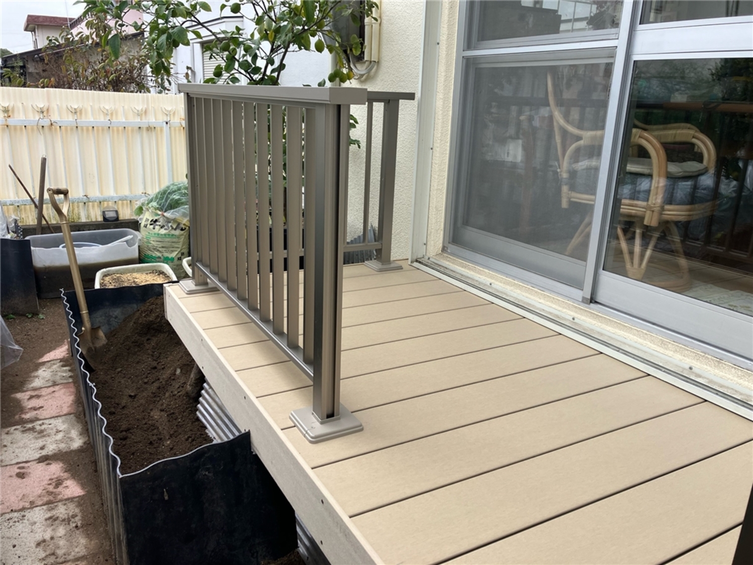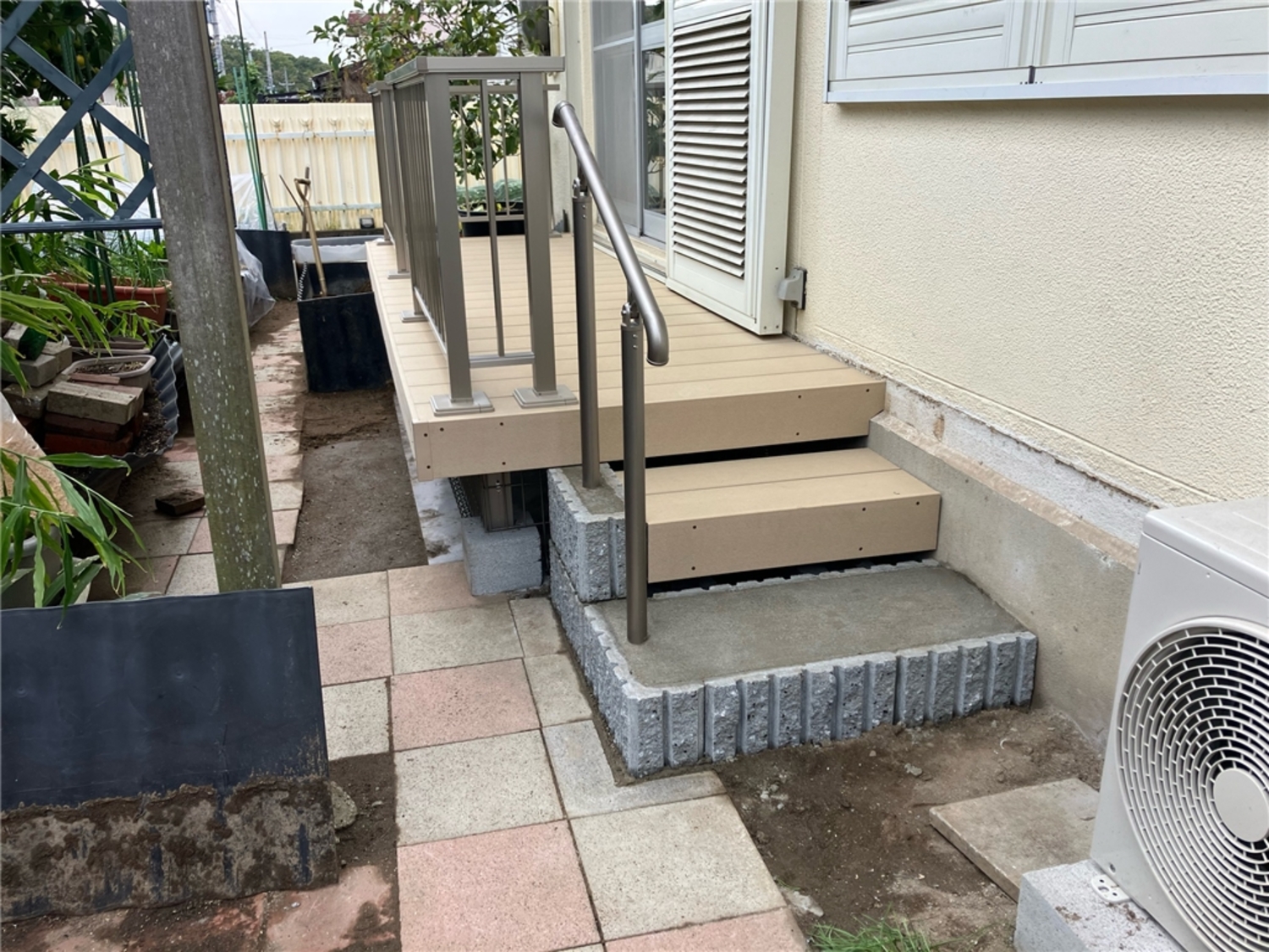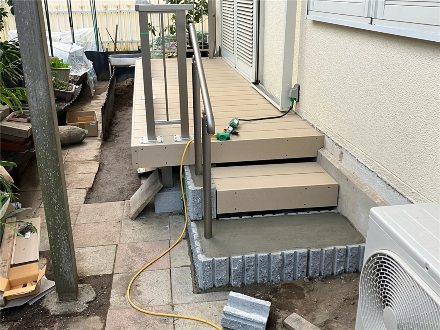 ホーム 施工事例 リフォーム種類別 すべて ウッドデッキ 樹ら楽ステージ ウッドデッキ エクステリア フェンス 階段 リフォーム種類別|すべて Before 天然木デッキが半分朽ちてしまい壊れています。 施工中 After ご高齢のため階段の踏み外しを考慮して、ステップを大きくした形で提案いたしました。 After 樹ら楽ステージ、デッキフェンス付き、階段付きでプラン作成しました After After 物件概要 建物 戸建て リフォーム箇所 エクステリア 商品 樹ら楽ステージ 工期 4日 予算 60万 都道府県 大阪府 一覧へ戻る リフォーム種類別 すべて 窓リフォーム 玄関リフォーム エクステリアリフォーム 水廻りリフォーム その他リフォーム 建物別 すべて 戸建て マンション リフォーム箇所別 すべて 玄関 キッチン お風呂 LDK 地域別 すべて