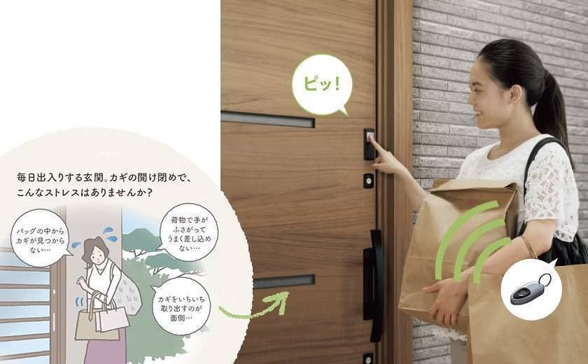 新調したことで引き戸の開閉が軽くなるのはもちろんのこと、今回簡易タッチキーお選びいただいたことで、鍵を取り出すことなく車と同じように快適お使いいただけるようになりました。